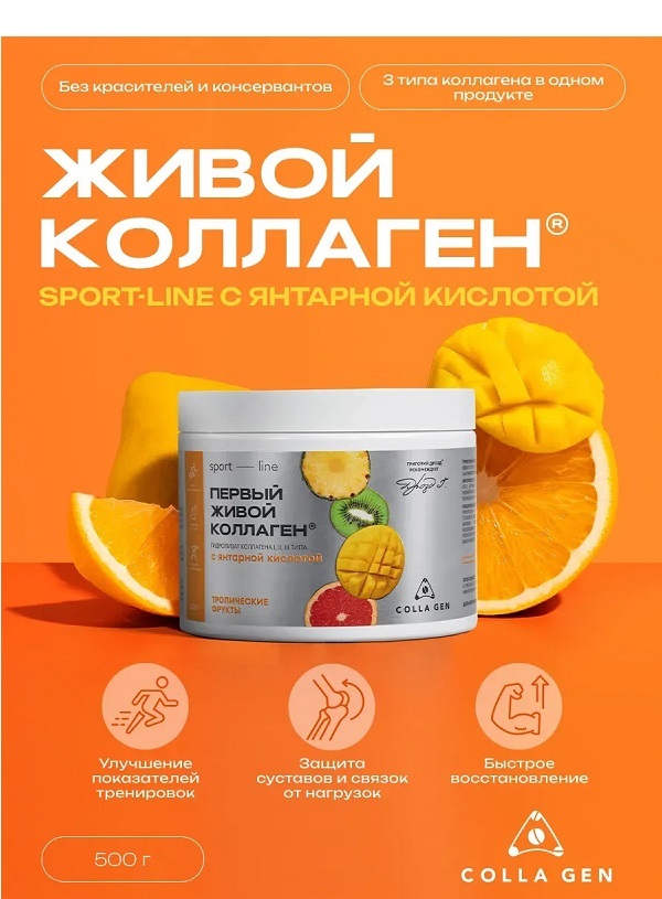 В НАЛИЧИИ Гидролизат коллагена пищевой SPORT LINE с янтарной кислотой со вкусом тропических фруктов 500гр - 2990 руб.