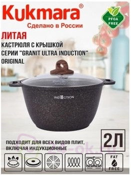 Кукмара Кастрюля Granit ultra original 2 л стеклянная крышка кго22а