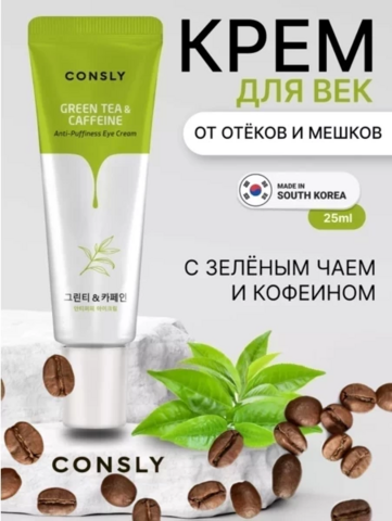 Consly Тонизирующий крем для век с кофеином и экстрактом зеленого чая, 25 мл.