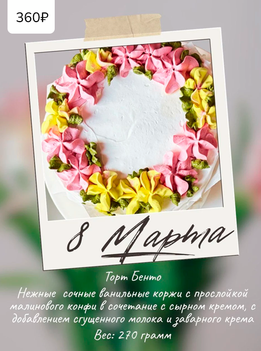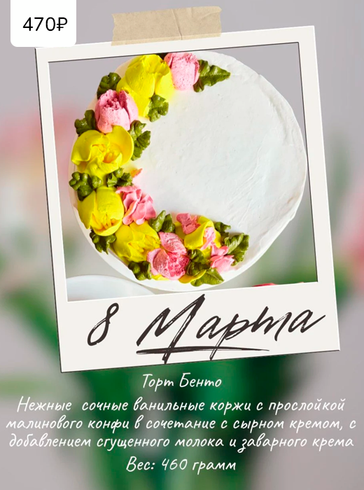 🌷Кофе и десерты к 8 Марта! Новинки бенто тортиков к празднику!