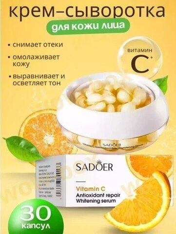 SADOER Крем сыворотка для лица в капсулах с витамином C, 30 шт.