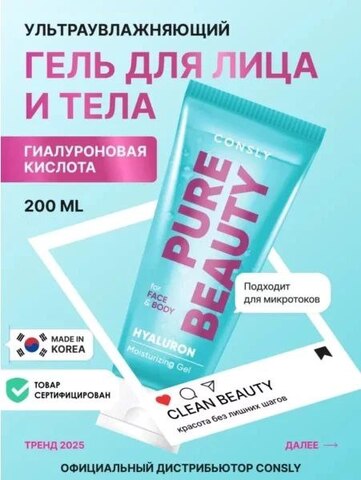 Consly Увлажняющий гель для лица и тела с комплексом гиалуроновых кислот, 200 мл.