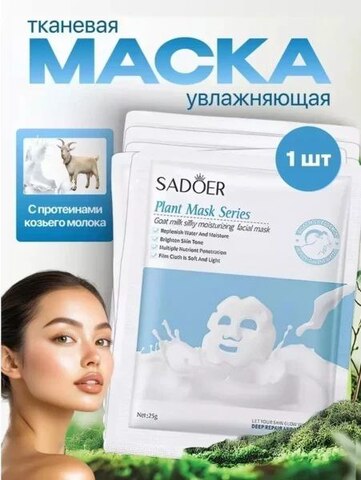 SADOER Увлажняющая тканевая маска для лица с протеины козьего молока Goat Milk