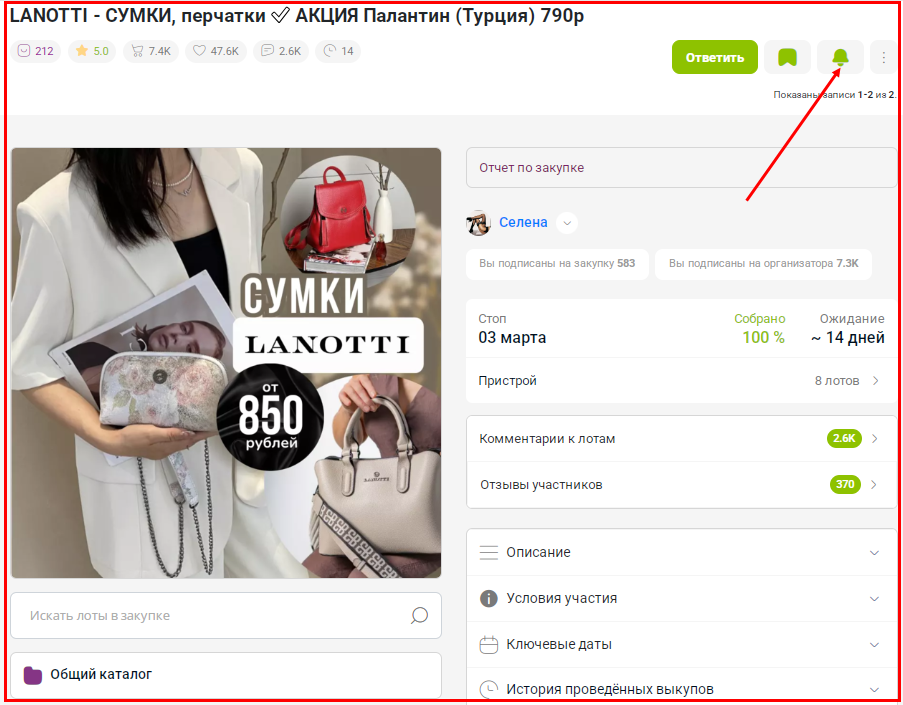 подписчикам новостей организатора Селена, подписчикам новостей закупки " LANOTTI", подписчикам новостей закупки "Pola - сумки известного качества", подписчикам новостей закупки "www.dakotacom".