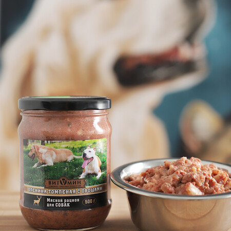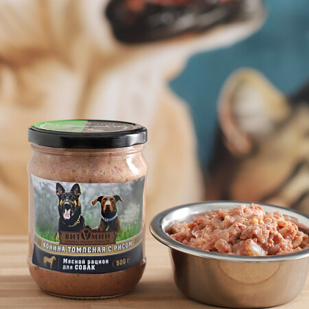 Конина томленая с рисом 500г с/б корм для собак всего за 276 рублей
