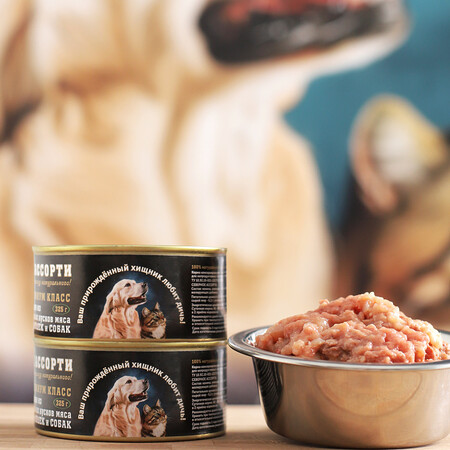 это консервированный диетический продукт (108-110 ккал), обогащенный Омега-3 и содержащий натуральные компоненты: мясо лося, субпродукты, плазму крови и овощную клетчатку. Продукт богат железом, витаминами группы B (B1, B6, B12, PP), селеном и цинком, обеспечивая организм полноценным белком.