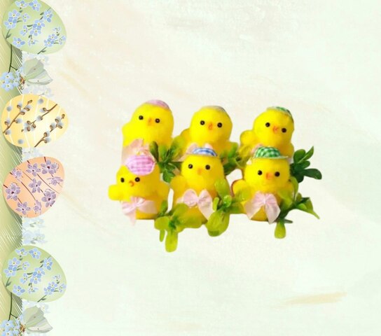 Сувенир пасхальный Цыпленок с розой и яичком набор 6шт