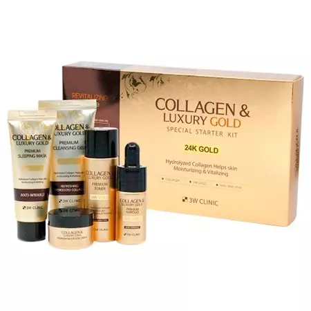 3W CLINIC Набор средств для лица с коллагеном и золотом COLLAGEN & LUXURY GOLD PREMIUM WRINKLE