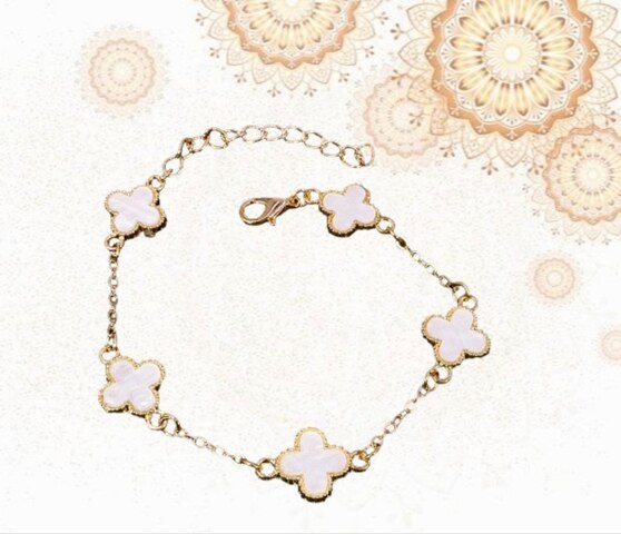 Браслет на руку Клевер в белой глазури с золотой цепочкой, металл