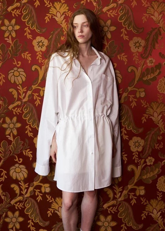 По линии талии, с внутренней стороны кулиска - шнурок из основной ткани, который при желании можно сделать приталенным: достаточно затянуть кулису и завязать шнурок.