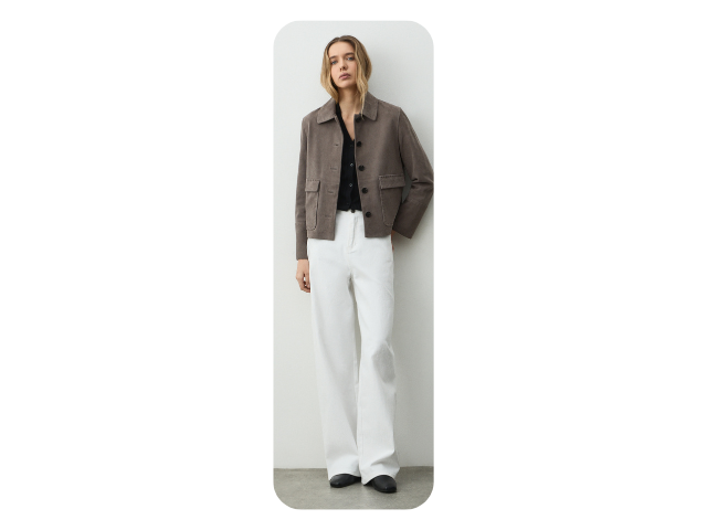 Например, к белым джинсам.Они мгновенно делают образ легче