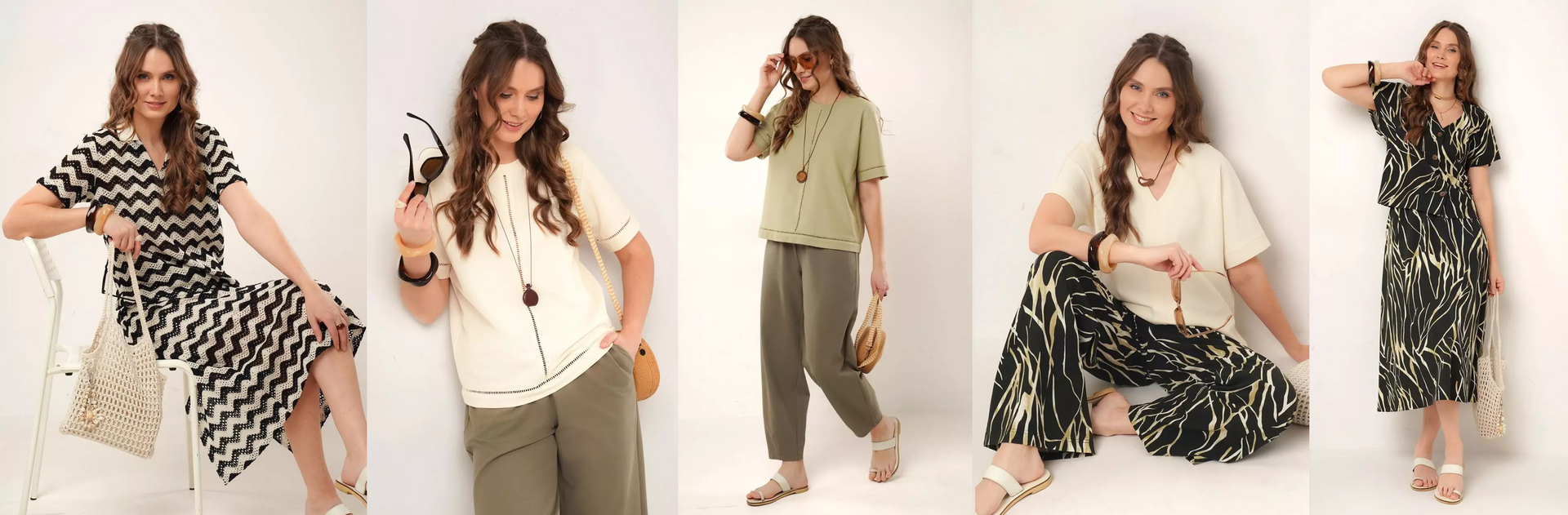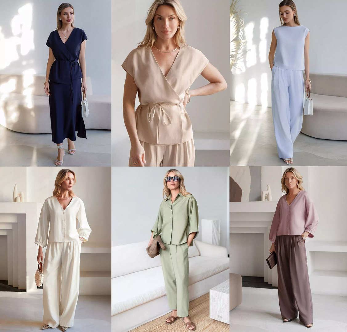 и блузка с пышными рукавами, а еще палаццо, топ-лодочка, платья –