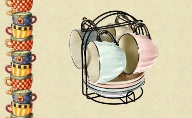 Набор кофейный 9предметов(чашка 220мл,блюдца,подставка)