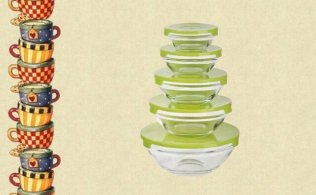 Это столовые сервизы на разное количество персон, чайные и кофейные наборы, комплекты кастрюль разных объёмов, наборы бокалов для вина, шампанского и воды,наборы ножей,кухонные принадлежности.
