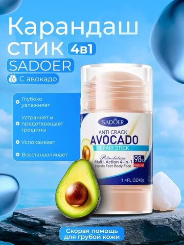 SADOER Универсальный крем-стик с экстрактом авокадо для ухода за кожей лица, рук, ног и тела, 40гр.
