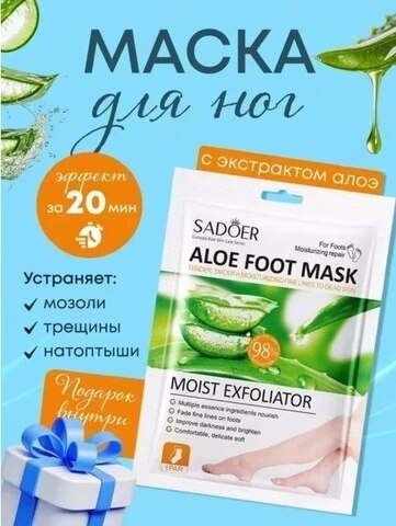 SADOER Восстанавливающая маска-носочки для ног с алое вера от трещин и шелушения