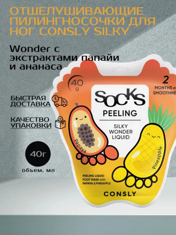 Consly Отшелушивающие пилинг-носочки для ног Silky Wonder с экстрактами папайи и ананаса, 40 г.