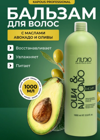 Kapous Studio Бальзам увлажняющий для волос с маслами авокадо и оливы 1000 мл