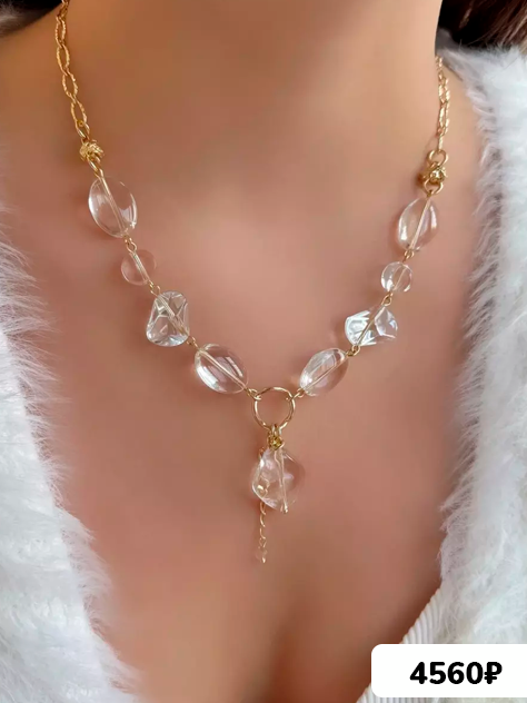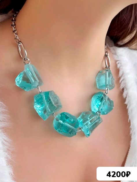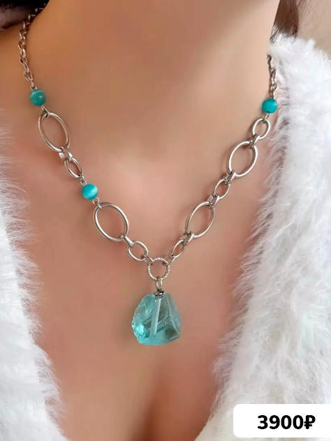 Цепь с кулоном из аквакварца в фурнитуре из стали