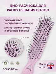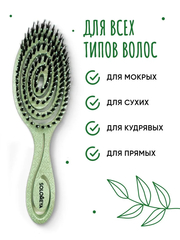 Экологичная расческа с гибкими щетинками мягко массирует кожу головы, подходит для сухих и влажных волос, не травмирует и не спутывает волосы.