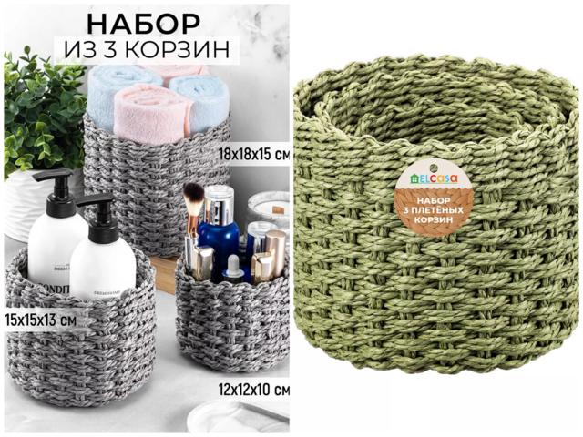 Набор 3 плетеных корзин