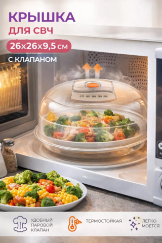 Крышка для СВЧ 26*26*9,5 см с клапаном