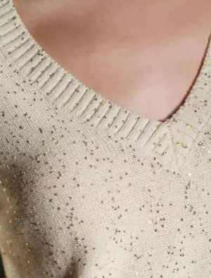 Джемпер с V вырезом из хлопковой пряжи с пайетками. D39.371 - бежевый