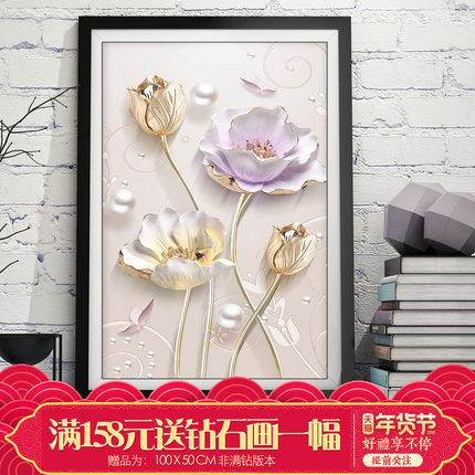 Можно добавить эту картину в каталог?钻石画2017新款满钻客厅素雅郁金香竖版玄关简约现代贴点钻十字绣