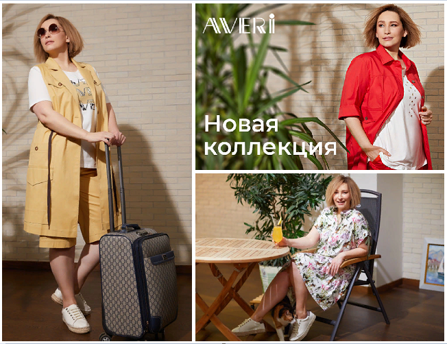 Компания AVERI представляет коллекции женской одежды больших размеров. Женская одежда торговой марки AVERI отличается единой стилевой концепцией, созданной автором коллекций и основателем фирмы российским дизайнером Татьяной Авериной.