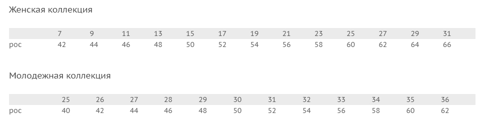Изделия идут размер-в-размер. Не маломерки, не большемерки. В точности соответствуют российским .
