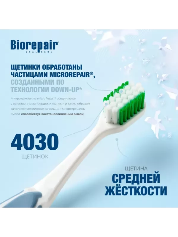 - Первая зубная щётка на рынке профессионального ухода за полостью рта на основе microRepair.