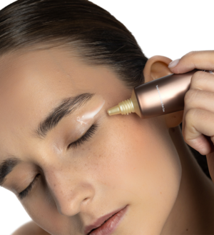 нанесите необходимое количество крема на область вокруг глаз с помощью подушечек пальцев.