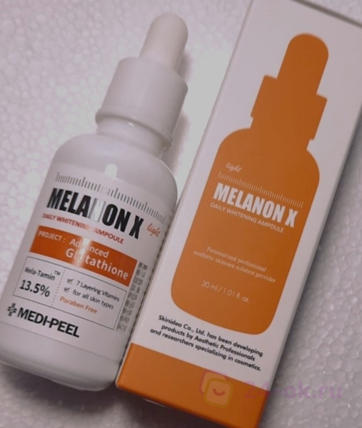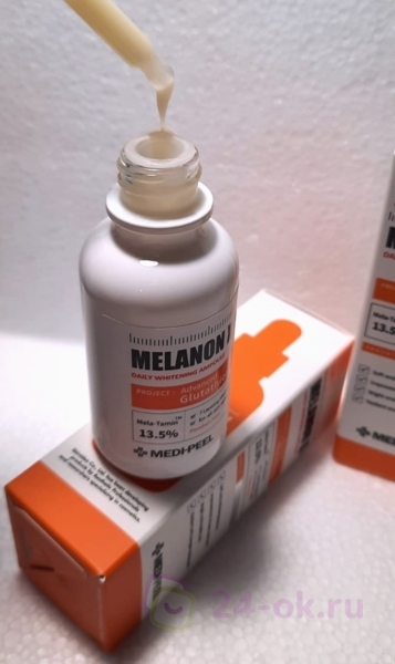 Ампула Medi-Peel Melanon X Ampoule уменьшает глубину морщин, устраняет гиперпигментацию и выравнивает тон, придавая гладкость, упругость и сияние. Средство борется с тусклостью, уплотняет и подтягивает, восполняет недостаток влаги, разглаживает кожу в районе носогубных складок, вокруг глаз и рта.