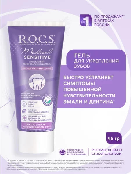 Гель реминерализующий ROCS Medical Sensitive для чувствительных зубов, 45гр