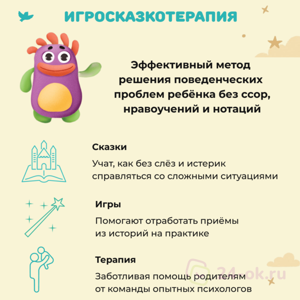 - специальные терапевтические игры (по одной игре на самые распространённые проблемы, связанные с детской агрессией),