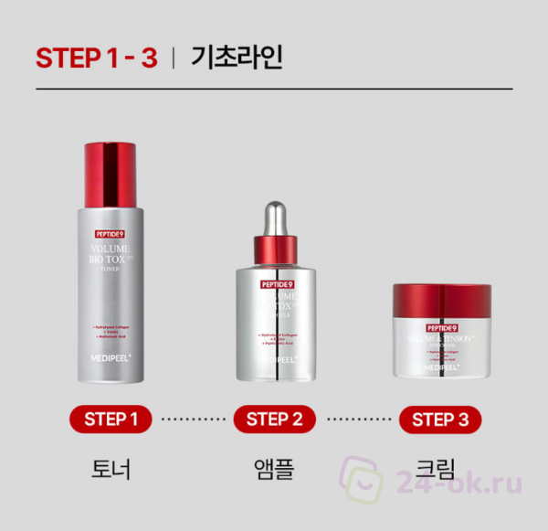Пептидный тонер-бустер с матриксилом Medi-Peel Peptide 9 Volume Bio Tox Toner Pro обеспечивает интенсивное увлажнение и проводит влагу на глубокие слои эпидермиса. В кратчайшие сроки справляется с сухостью, стянутостью и шелушениями. Быстро восполняет недостаток увлажнения после умывания и стабилизирует pH баланс после умывания.