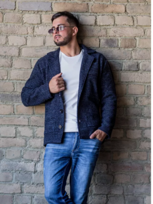 Стильный, плотный трикотажный мужской пиджак (1571)