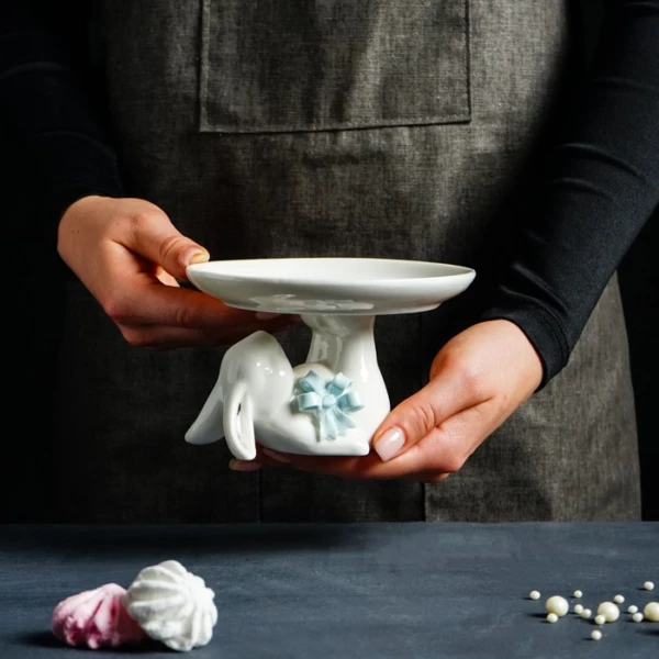 Блюдо для пирожных «Зайка», 13×12×8 см, цвет белый