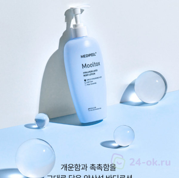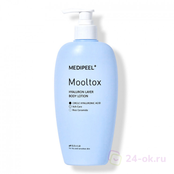 Гидрирующий аква-лосьон для тела Medi-Peel Mooltox Hyaluron Layer Body Lotion проникает глубоко в клетки эпидермиса, интенсивно увлажняет, на клеточном уровне устраняет причины обезвоженности. Эффективно избавляет от стянутости, сухости и шелушений, активно напитывает, восстанавливает оптимальный уровень увлажнения. Обладает показателем pH 5.5±1.