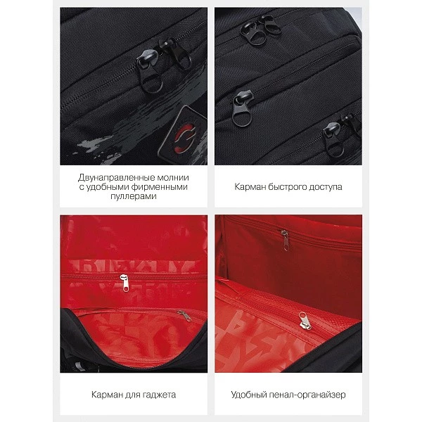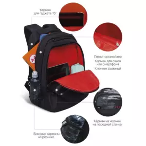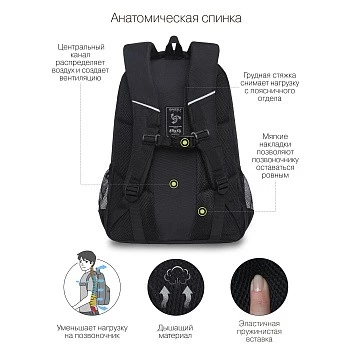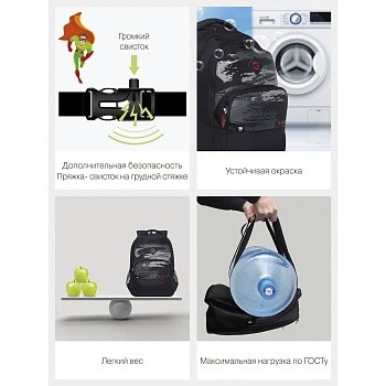 Эту серию рюкзаков GRIZZLY мы разработали для мальчиков старших классов. Они рассчитаны на рост от 150 см. Рюкзаки яркие и стильные — нравятся подросткам. Рюкзак сделан из плотного полиэстера и хорошо держит форму. Есть светоотражающие элементы. Все швы аккуратно прошиты, а где это нужно, усилены дополнительно. Допустимая нагрузка — 7 кг. Чтобы от такого веса не пострадала осанка, мы сделали анатомическую спинку. Широкие лямки с нагрудной стяжкой со свистком снижают нагрузку на плечи. Несмотря на то, что подросткам приходится носить с собой много вещей, в школьный рюкзак они помещаются. Здесь есть два больших основных отделения для книг, тетрадей и папок А4. Много внутренних и внешних карманов, пенал, брелок для ключей, отделение быстрого доступа для документов и кошелька. Материал рюкзака с водо- и грязеотталкивающей пропиткой. Если рюкзак все же чем-то испачкался, мы рекомендуем ручную стирку в холодной воде.