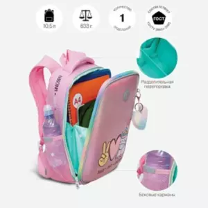 Лямки портфеля имеют надежную и прочную регулировку, крепко фиксируя удобную длину. Эти детские ранцы легкие, но при этом надежные и очень вместительные. Внутри сумки имеются разделительные кармашки, которые помогут отделить учебники от рабочих тетрадей, удобно расположить пенал с канцелярскими принадлежностями. А наружные боковые карманы с легкостью помесят себя питьевую воду.