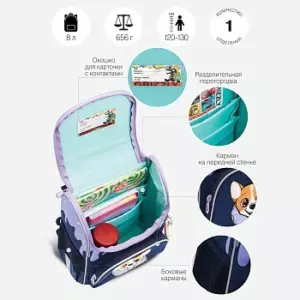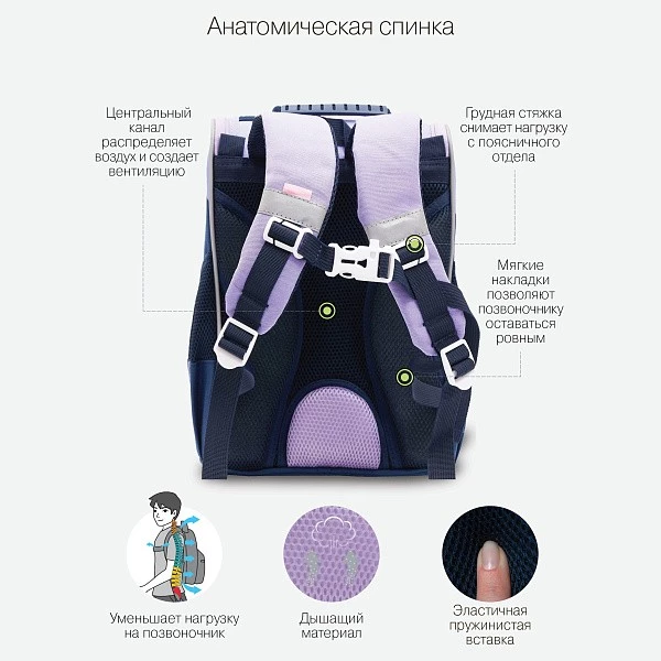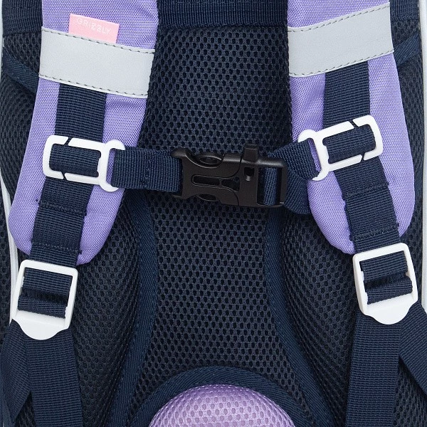 Ищите компактный, но при этом вместительный ранец для первоклассника? Тогда Вам подойдет суперлегкий рюкзак GRIZZLY серии RAm для детей школьного возраста ростом от 120 до 130 см. Жесткая конструкция ранца, анатомическая спинка, вентилируемые лямки и грудная стяжка равномерно распределяют вес по спине ребенка. Жесткое дно и боковины не деформируются при нагрузке и создают надежную защиту содержимого. У школьного портфеля одно большое отделение с разделителем для учебных пособий формата А4, все лежит на своих местах. Рюкзак широко открывается, обеспечивая легкий доступ к содержимому. У него есть фронтальный карман на молнии для разных мелочей, удобная ручка и два вместительных боковых кармана. В комплекте к детской сумке прилагается мешок для обуви. Вечером ребенка точно заметят водители, т.к. со всех сторон есть отражатели. За счет водо- и грязеотталкивающей пропитки ранец долго остается как новый. Если он все же чем-то испачкался, мы рекомендуем ручную стирку в холодной воде. С уважением, команда GRIZZLY