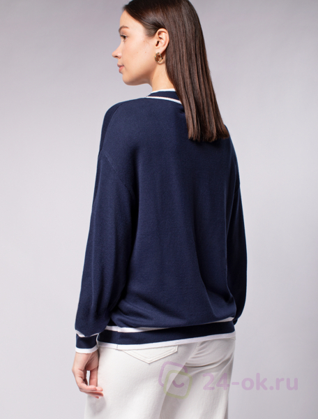 Кардиган тонкой вязки из вискозы. D31.108 - тем.синий-белый