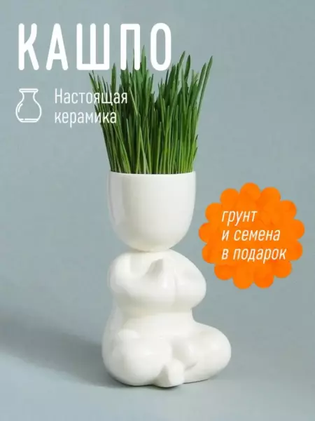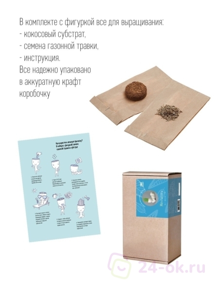 Комплект: Фигурка, грунт, семена и инструкция для посадки