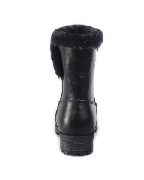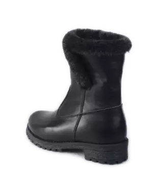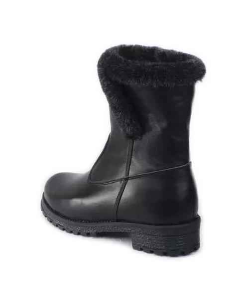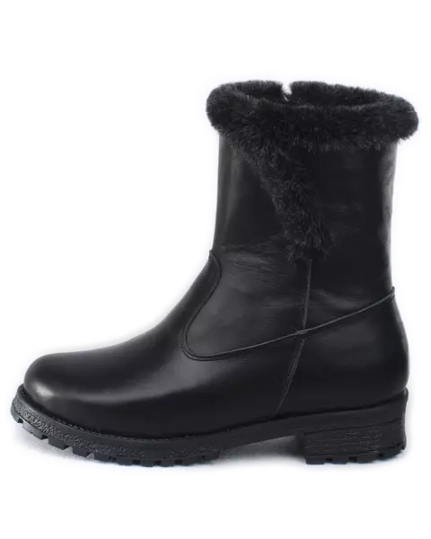 Полусапожки женские на литой подошве Черные, кожа, молния с опушкой