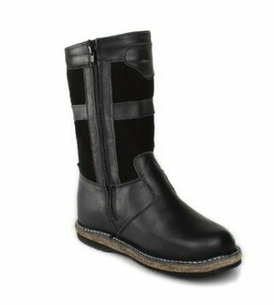 Сапоги подростковые на войлоке, черные, кожа, замша, молния.