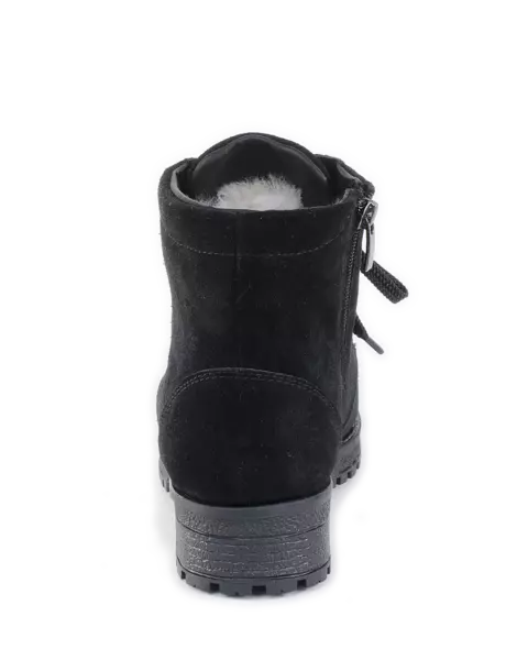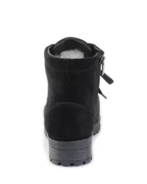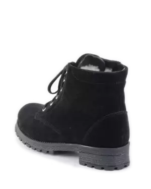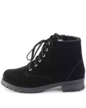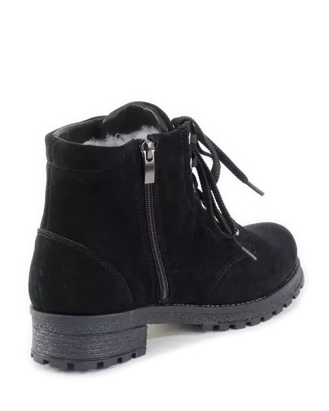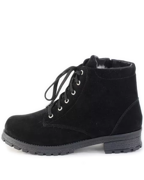 Ботинки женские на литой подошве черные, замша, молния, шнуровка