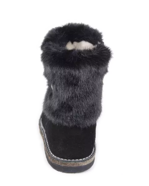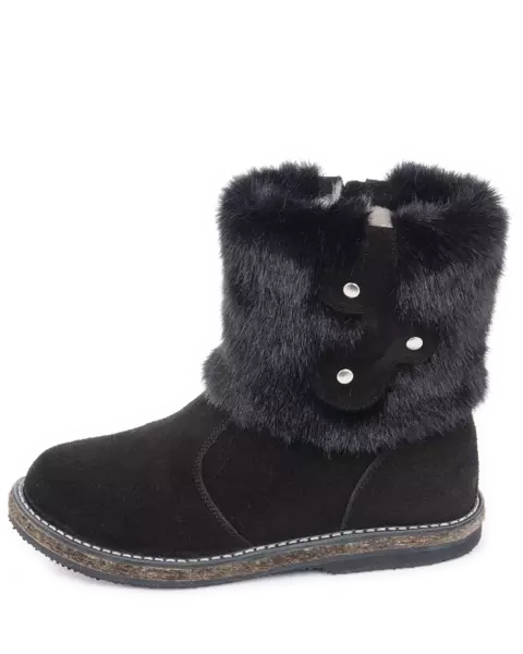 Унты женские на войлочной подошве. Черн., Замша. Черная "норка". Короткие. Молния