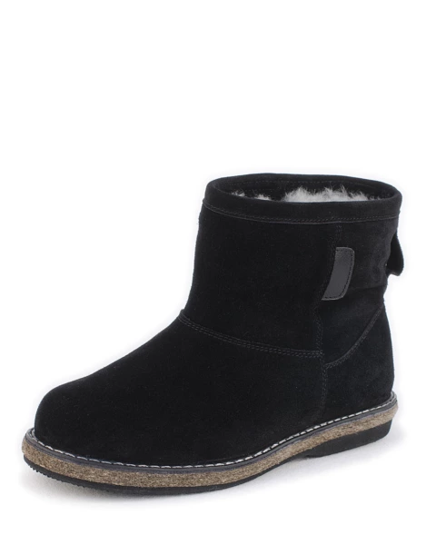 Угги женские на войлочной подошве, Замша, овчина, черные