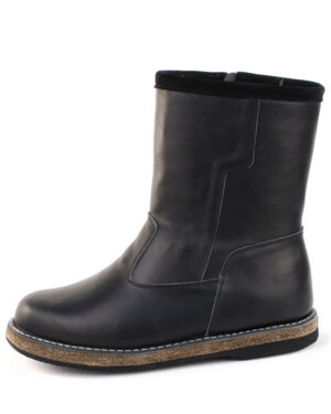 Полусапоги мужские на войлочной подошве, Черные. Кожа. Молния.